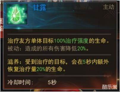 基本定位:治疗,只有洗炼出甘露和滋养才具备治疗能力,满大街都是。