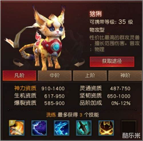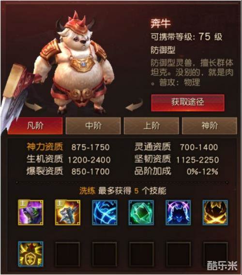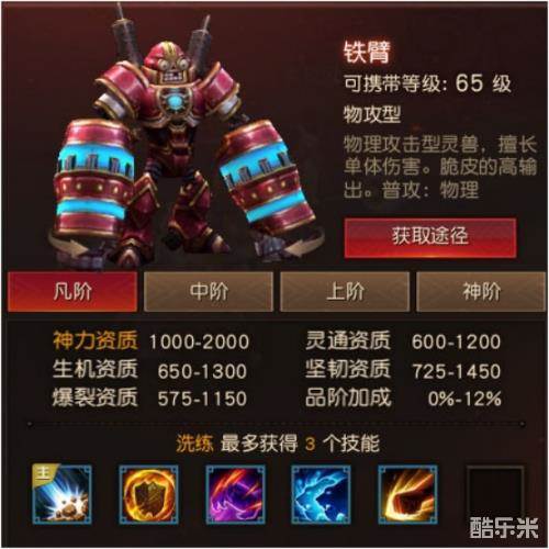 基本定位:能打能抗的灵兽,比铁臂好太多,真的好太多。但是天生技能没什么可以说的,都是常见的物理伤害技能。