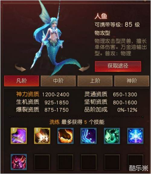 基本定位:图鉴中等级最高的蓝色灵兽,近战DPS,一只很尴尬的近战灵兽,强不强?看资质非常强,但能不能在战斗中活下来?很难说。最终应该只是一只用来进行合成的灵兽。