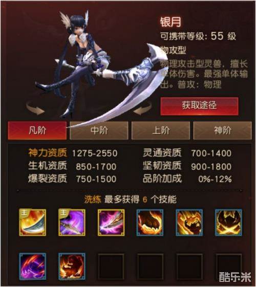 基本定位:资质属性、技能效果,在55级这个档次上,都属于怪物级别,当然银月妹子的外形还是很可人的!当然这也并不妨碍她一刀削死人!