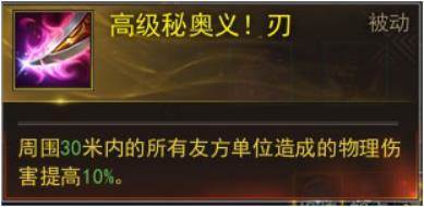 一个类似光环效果的增益技能,所有友方单位的物理伤害提高!