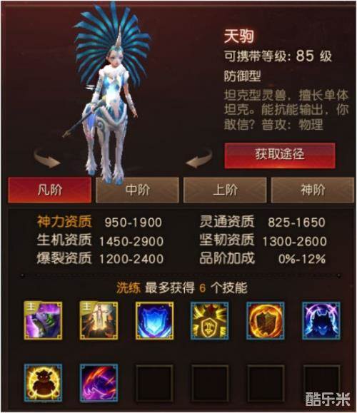 基本定位:天驹很瘦,但一点都不妨碍她踹翻敌人!最强的坦克,最强的控制灵兽,最强的保护灵兽,三个最强,没有之一!