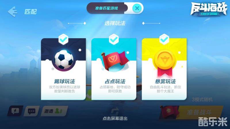 《反斗海战》匹配模式有三种模式,包括踢球玩法、占点玩法还有悬赏玩法。