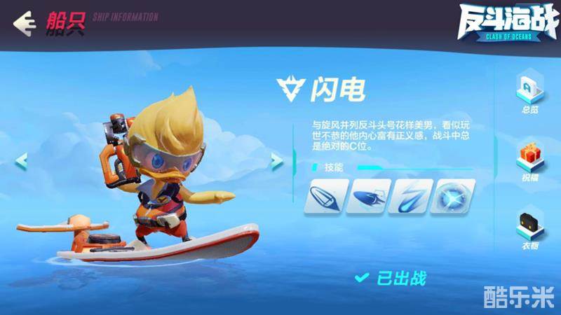 游戏中的船只分三种功能,分别是输出型、辅助型还有坦克型。输出型代表船只有闪电、大胖、旋风等;辅助型船有豆豆和阿福;坦克型船只包括舰长、大师和佐罗。