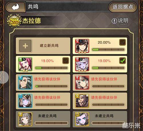 每个角色都有不同的共鸣伙伴要求,点击建立共鸣,就会随机与一个角色进行共鸣,不同的角色会带来不同的属性提升