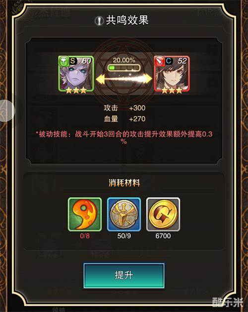 成功建立了共鸣的角色可以通过新道具进行提升,带来更多的属性加成,想要获得属性加成需要勾选中这个角色哦,角色等级达到60、65、70级时会分别开启一个位置