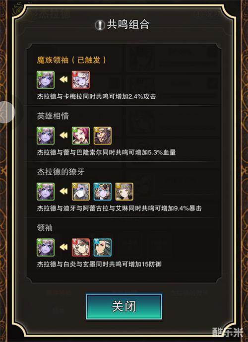 另外每个角色都有不同的共鸣组合,,按照组合勾选指定的伙伴即可获得额外的属性加成