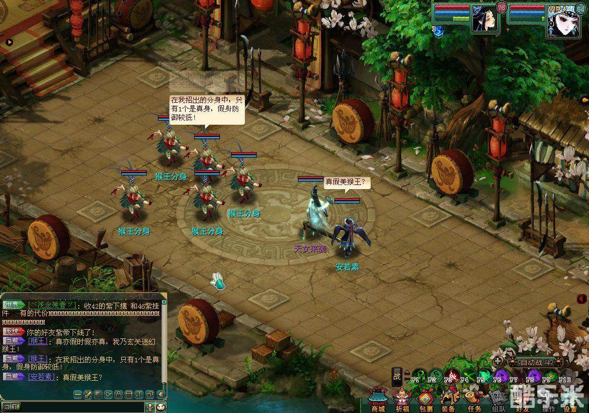 猴王分身就和火妖一样,要找出真身,就要自己有群或是有群宝宝,群攻下去伤害最少的就是真身。打死真身就能胜利。