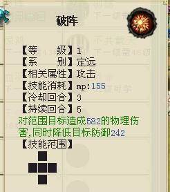 1、河洛的物理神技还有一个就是破阵,十字方位降低对方的物理防御。