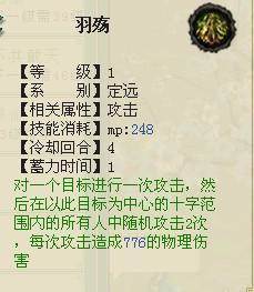 2、另外一个神技就是羽殇了,蓄力技能(所谓的蓄力技能就是要等到回合结束的时候才释放),开场3回合CD,对单体攻击3次,还会随即攻击目标周围的目标。