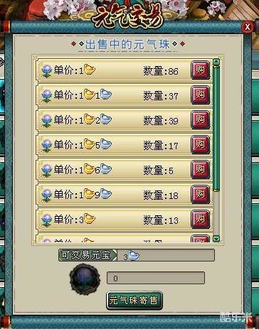 元气珠购买:在商城元气交易界面,点击“购”,输入想要购买的元气珠数量,即可购买元气;