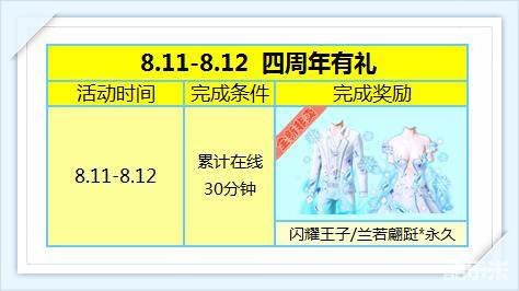 8.11-8.12,累计在线30分钟,全民pick的高端光效情侣套装免费送,同庆四周年,有你更精彩!