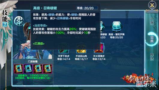 20级技能效果:啵啵的攻击力为主角攻击力*142%,持续15秒。冷却时间35秒。