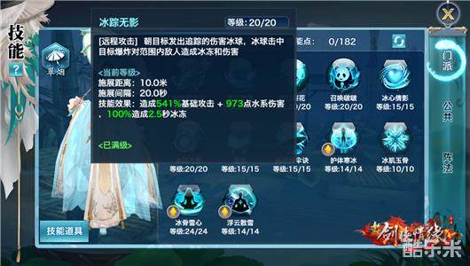 20级技能效果:造成541%基础攻击+973点水系伤害,100%附带2.5秒的冰冻效果,冷却时间20秒。