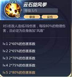 对1名敌人造成2段伤害,每段60%(65%/70%/75%/80%)的物理伤害,且必定为自身施加“风遁”。