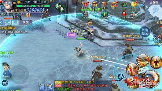 3、按住技能按钮后,在技能按钮周围会出现一个圆形的技能指示框,保持手指的挪动状态并拖动手指,可以改变技能释放的方向和位置。调整好后,松开手指,释放技能。
