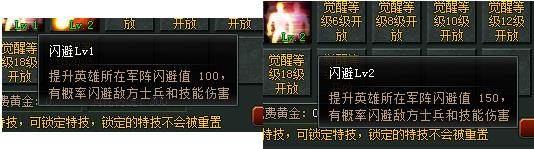B,闪避,这是一个非常BUG的技能,可以让武将所在军阵有几率闪避士兵和技能伤害。非常的变态