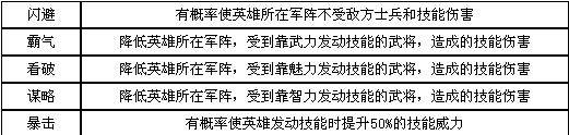 特技种类:武、智、魅、技能威力、闪避、霸气、看破、谋略、暴击。