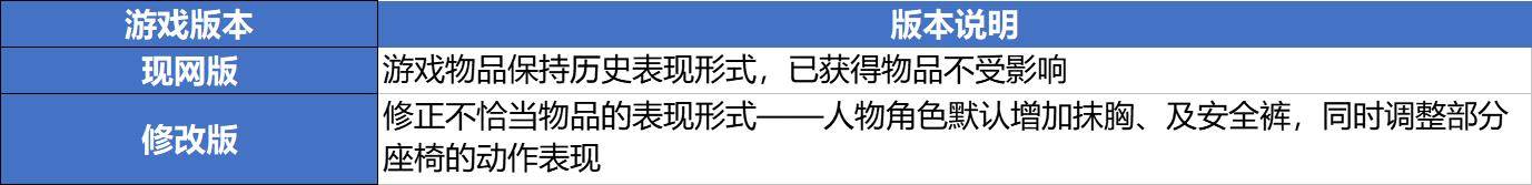 注4:『神话-蛇影』、『随风而逝』,男性角色物品并未修改,仅对女角色进行补偿。