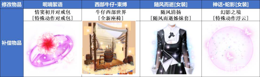 三、 由于相关部门的明确整改要求,针对四件特殊物品(『神话-蛇影』、『随风而逝』、『呢喃絮语』、『西部牛仔-束缚』),我们将于8月7日凌晨 进行停服更新,对原物品进行直接修改。