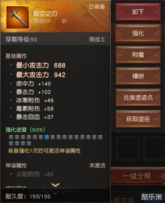 几乎所有的装备都可以进行强化,可以极大的提升装备属性。