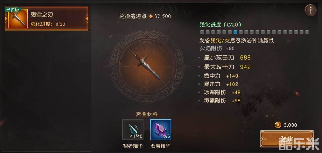 装备强化需要消耗各种精华,包括智者精华、恶魔精华、神识精华和泰坦精华。