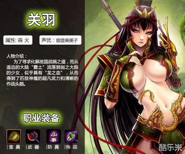关羽拥有火属性和森属性,所以可以使用火和森属性的卡牌和装备。