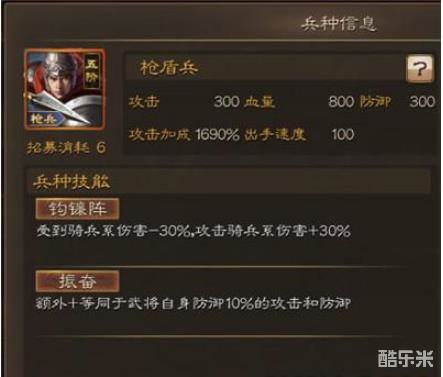武防型武将:该类型武将是武力和防御双向发展,在配合枪盾兵自身振奋被动技能效果的同时,达到输出和防御的双重提高。
