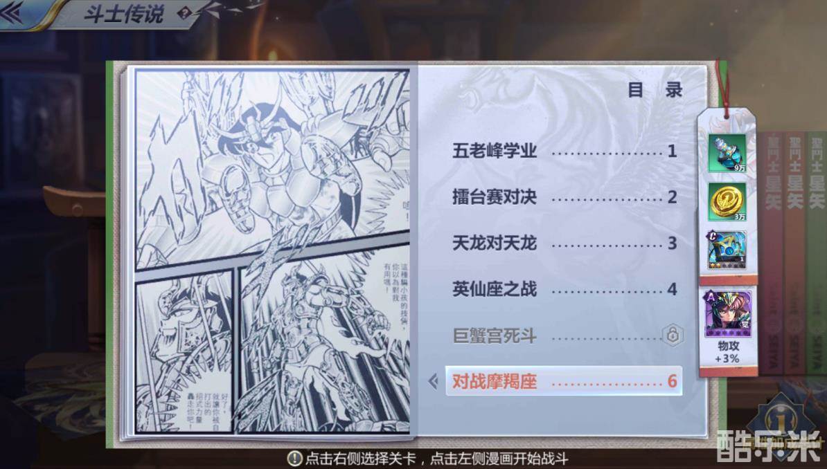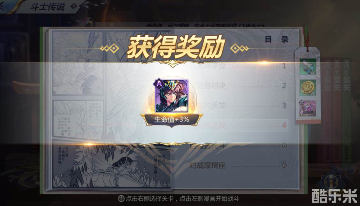 在斗士传说中,带你回顾漫画剧情中各个斗士出现的精彩时刻,用全新的方式开始感受不一样的战斗。每次进入关卡后可观看精彩漫画视频,回顾最经典的漫画瞬间,找回当年翻阅圣斗士漫画的回忆。
