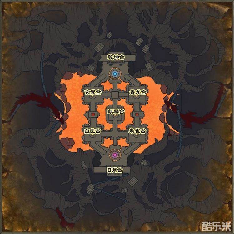 1分钟后,火焰墙消失,玩家可进入主战场。主战场的东北、西北、东南、西南和正中,五个位置分别有一个禁天锁,默认为中立势力(白色)。玩家右键点击禁天锁,吟唱8秒后可占领为己方阵营。