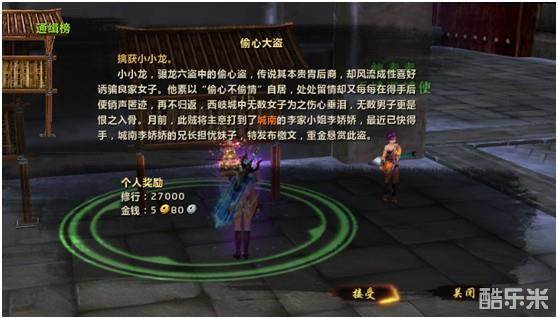 “小小龙”乃偷心之贼,风流成性,城南李家为此日夜戒备防范此贼,你需要在城南将此采花大盗捕获。
