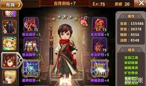 下图中就是小编的古月剑仙了,现在是刚刚+7,从下面看的话,大家也都是能够看出效果还是很不错的,特别是在穿上套装之后,在后面的时候既有肉又有伤害,无论是在前排还是在后排都是能够胜任的,所以如果大家现在手上没有什么更好的英雄的时候,小编还是比较建议大家使用的,而且在竞技场上面的表现也是非常不错的。