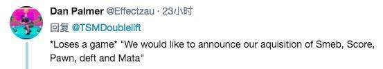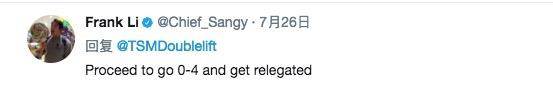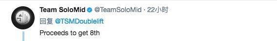 TSM官推也跟着大师兄瞎起哄,加入了毒舌调侃的队伍中:然后争取拿到第八名(现在TL与FLY、Echo Fox并列第七,即倒数第二)