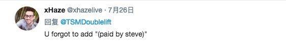 你忘记加上“steve付账”了(国外的一个梗,调侃TL老板人傻钱多)