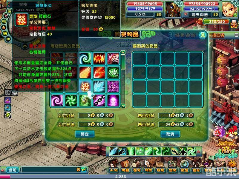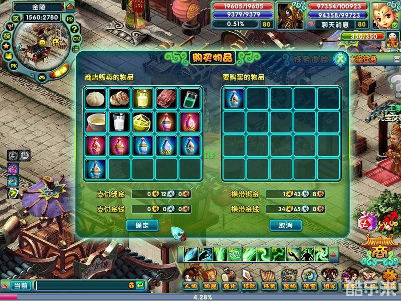 (2)选择您需要购买的物品,并确定购买个数,点击确定即可购买。在购买时有些物品需要支付绑金,有些物品支付金钱。