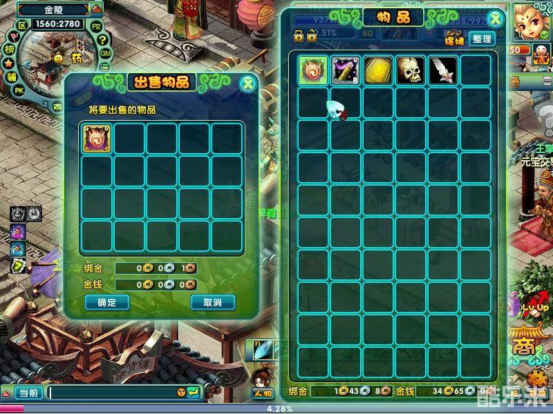打开出售物品界面后,右击物品栏中需要出售的物品,即可将其放入出售栏中,之后点击确定,即可将物品出售。(部分特殊物品无法出售)
