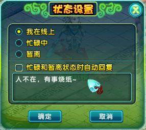 点击好友界面右下角的齿轮按钮“”,打开状态设置,可以设置你的状态,与自动回复的内容。