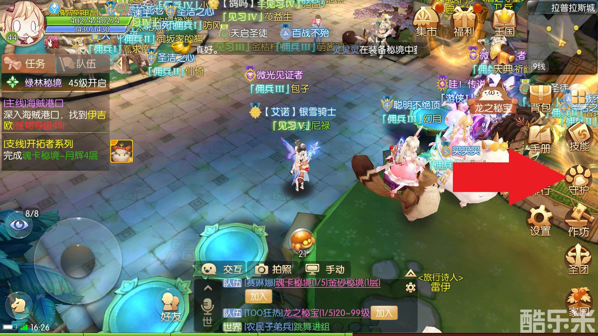 然后点击下图箭头所指的守护图标,进入守护界面。