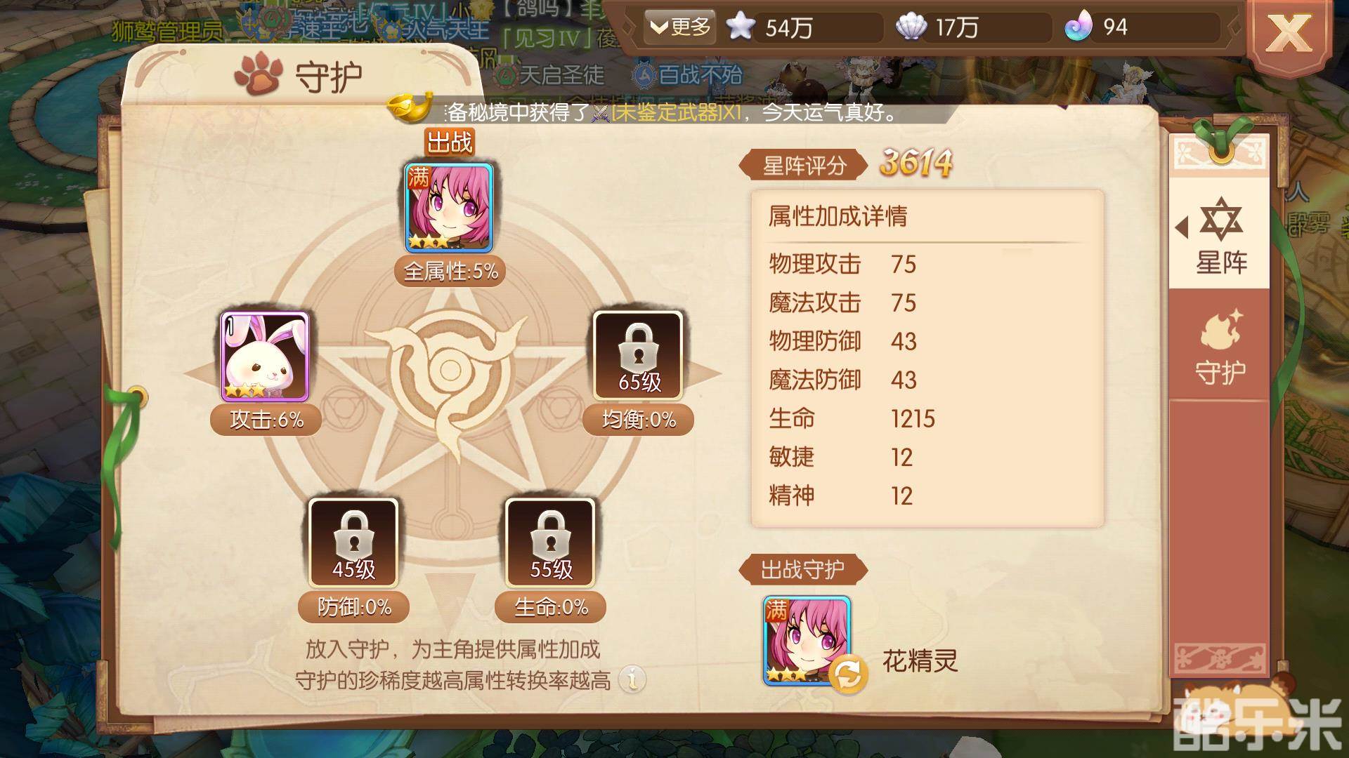 在守护界面我们可以看到有一个五角星阵,每当玩家等级到了的时候就会解锁一个空位,每次上阵守护都能给玩家带来战力的提升。