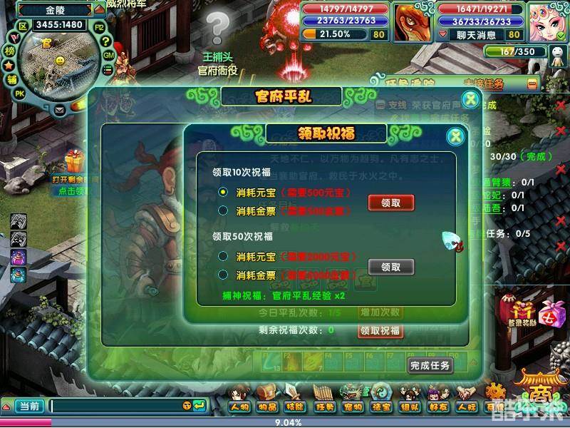 3、 付费还可获得两倍平乱经验,两倍生效不按照时间计算,而以一定平乱次数计算,两倍经验有两种付费模式,一种是生效10次500元宝,一种是生效50次2000元宝;