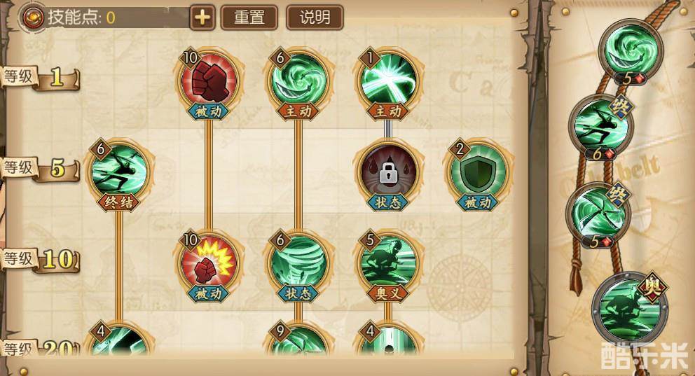 后期技能根据前期使用情况来决定,整体看索隆的技能还是比较好理解的。