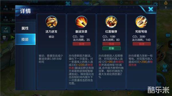 PS. 孙尚香一技能基础伤害很高,擅于利用孙尚香的一技能翻滚能让孙尚香在团战中伤害爆表。
