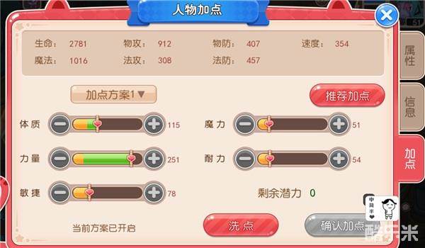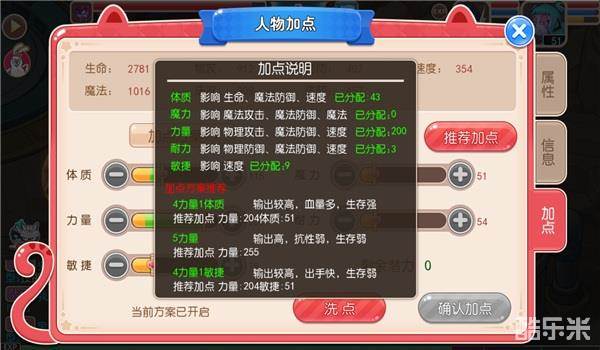而且人物加点选项分别有:体质、魔力、力量、耐力、敏捷。5个选项。