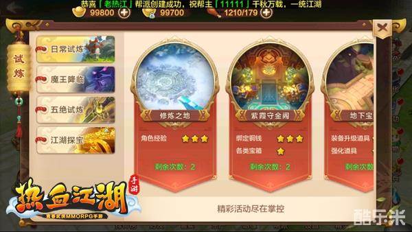 《热血江湖手游》第一天并不会出现明显的卡关情况,但是玩家根据任务走完新手教程后,都会迷茫当前应该如何升级,参加哪些活动,这时候有如下几种方法,可以获得大量经验值。