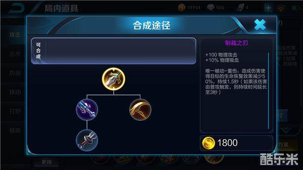 制裁之刃:制裁之刃由铁剑先合成风暴巨剑,而后由风暴巨剑与吸血之镰共同合成制裁之刃。制裁之刃可在泣血之刃与末世的吸血效果上基础再次提供10%的物理吸血,其唯一被动是黄忠出此装备的主要原因,唯一被动-重伤所带来降低被黄忠命中的敌方英雄的生命值回复效果,可在团战时为我方提供极大的有利条件。不论是守塔或者推塔,黄忠开启大招后,若敌人进入黄忠的攻击范围,配合队友的攻击,敌人必将有来无回;加上黄忠大招的攻击范围,在推塔时还可令敌人无法靠近防御塔,从而加快推塔的速度。最后一件制裁之刃的出装,可谓是重中之重,不可缺少的。