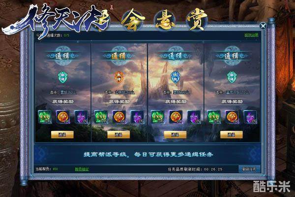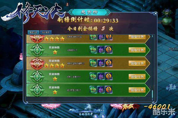 抢皇榜领悬赏啦!在萌乐网新游《修天决》中,悬赏榜每半小时刷新一次,每次悬赏榜中均会随机刷出特级、高级、中级、普通四种不同任务,其中的特技任务不仅数量稀少,而且奖励比其他品质的任务高出不少,堪称玩家最喜欢但是最难领取到的顶级任务。悬赏任务每天最多可领五个,诸位玩家千万别忘记去争抢悬赏榜中的特技任务哦!