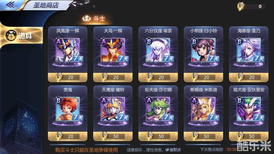 圣地争锋会产出该玩法的专属货币-圣域币。圣域币可以在圣地商店购买圣斗士,购买的圣斗士仅可在圣地争锋模式使用,且具有时效性,到期消失。
