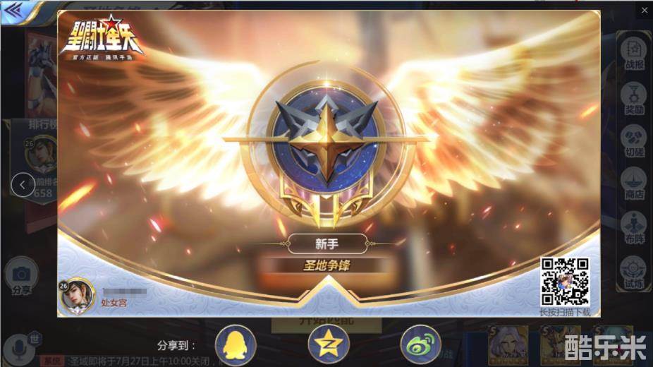 点击大厅左下角的分享按钮可以将当前段位信息分享到社交平台。