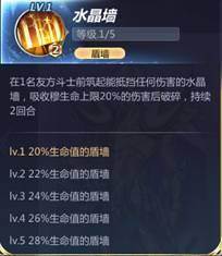 20%(22%/24%/26%/28%)的伤害后破碎,持续2回合(水晶墙不可叠加)