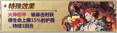 特殊:火神铠甲(被暴击时获得生命上限15¥得护盾,持续一回合)